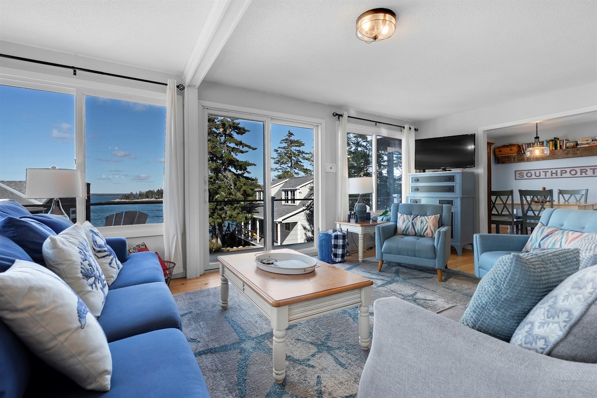 Find peace and serenity as you gaze at the glistening waters of the Sheepscot River. Our property sitting on Davis Island in Edgecomb, Maine overlooks the quaint town of Wiscasset, providing a calm atmosphere, stunning evening sunsets, and panoramic views. Located within the Sheepscot Harbour Village Resort, you are in a prime location to have access to local shops, antique markets, and restaurants. Take a stroll down to the Pier where you can experience the water up close.
