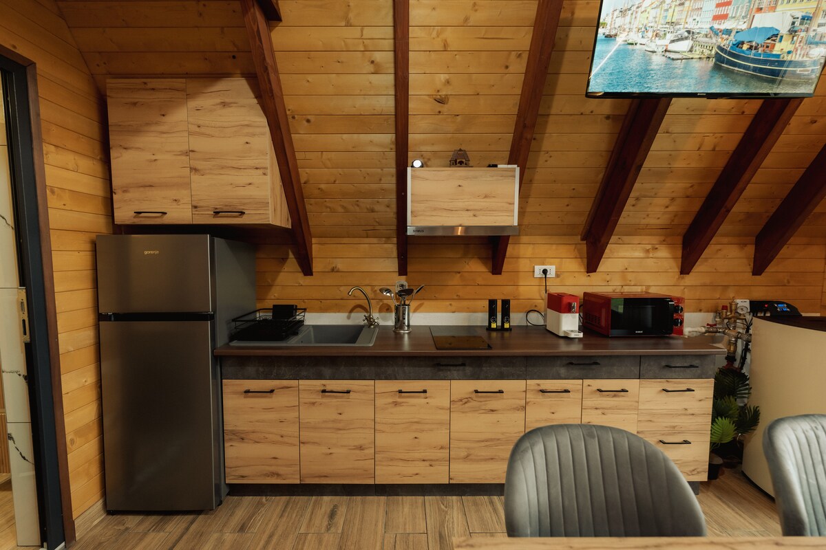 Discover the mountain paradise with a breathtaking view of the mountains and forests. The property offers you an apartment with a bedroom, kitchen, terrace for quiet outdoor relaxation, bathroom and mountain view. This dream property features a private sauna, where you can relax in complete comfort after a day spent exploring the beauty of the mountains. And the sweetest surprise: a "Ciubăr" for cooling during hot summers and a dedicated place for barbecue.