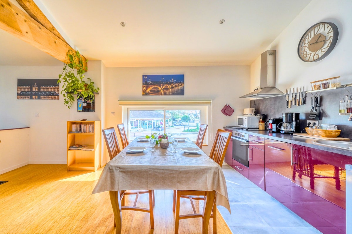 En plein coeur des Chartrons au calme à 10 m à pied des quais , maison spacieuse et agréable ; salon de 45 M2 et sa cuisine toute équipée, une suite parentale, une chambre mansardée et une mezzanine,d'une terrasse privative de 30 M2 équipée d'un salon de jardin... 💎 Formule "Tout Compris" – Zéro Surprise Nous appliquons un tarif forfaitaire incluant tout: ✅ **Frais de ménage** inclus. ✅ **Frais de service Airbnb** inclus. ✅ **Linge de maison & serviettes** fournis (1 par personne)
