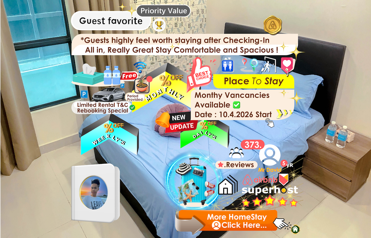 My homestay is located at very strategic location (Boulevard shopping mall), which is nearby airport, bus terminal, shopping malls & major tourist attractions. Therefore, my homestay is suitable for business travelers, couples, and travel with friends & families Guests are able to access swimming pool, gym, sauna, steam bath, shopping & eating places. Please enjoy your trip & stay in my homestay, and at the same time, explore Kuching’s must-go attractions; Sarawak cultural village, etc.
