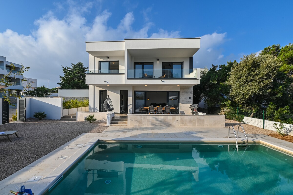 Completely new house located just 100m from the sea with heated pool. The house was built in the 2022 and it is located in small and peaceful settlement Potočnica at the most beautiful part of the island Pag. From the house there are some nice views toward the crystal clear sea. Neighborhood is very quiet and surrounded by greenery. House is decorated in minimalist style yet it's modern and equipped with everything you need for pleasant stay.