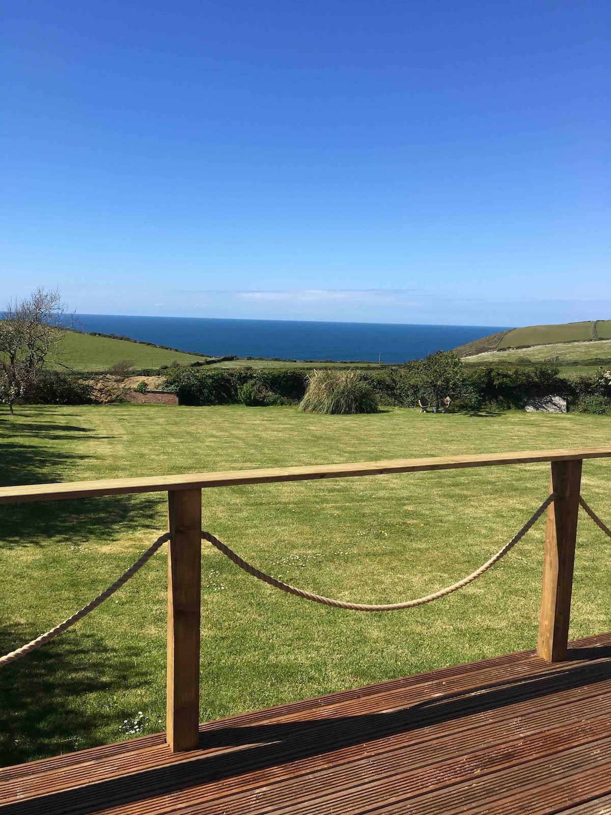 In Boscastle this Very spacious and comfortable open planned mobile home set in private gardens with superb sea views. Fully equipped kitchen,gas cooker,fridge/freezer and microwave. Double with king bed, one twin room. Shower room. Lounge and dining area with tele, free wi fi .All linen and towels are supplied with all necessary essentials, wash up liquid, t towels,j cloth etc Welcome pack, wine,,tea,coffee,milk.Outside decking area with table and chairs,sunbeds BBQ. Fire pit provided.