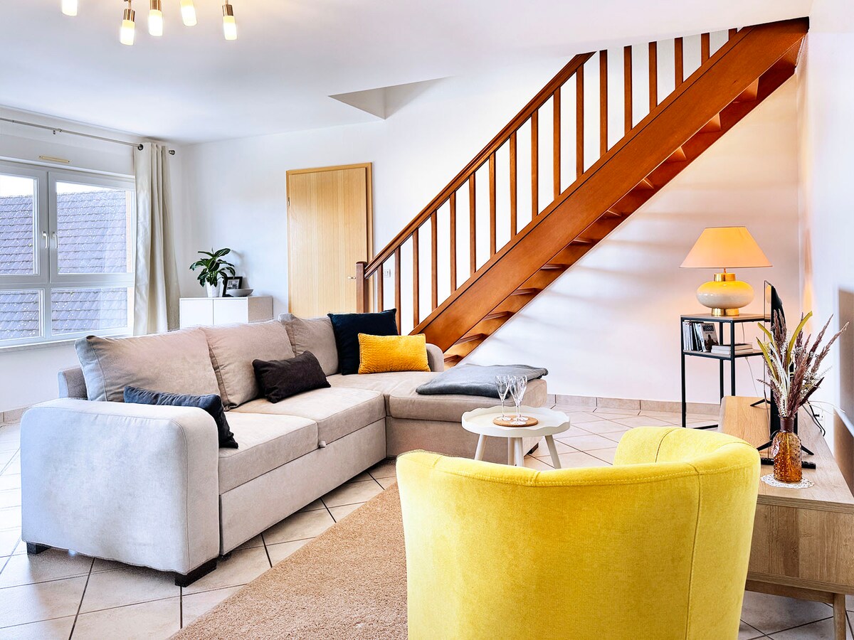Duplex of about 60 m2 rated 3*** very bright, fully equipped in BRUMATH Great location: - BY CAR: 3 min from the highway / 15 min from STRASBOURG / 10 min from HAGUENAU - BY TRAIN: 10 min from STRASBOURG - BY BUS: 20 minutes from HAGUENAU - ON FOOT: 15 min from BRUMATH train station / 2 min from BRUMATH city center and all shops (supermarkets, bakeries, pharmacy, etc.) -> Free and private parking space in the inner courtyard and bike shelter