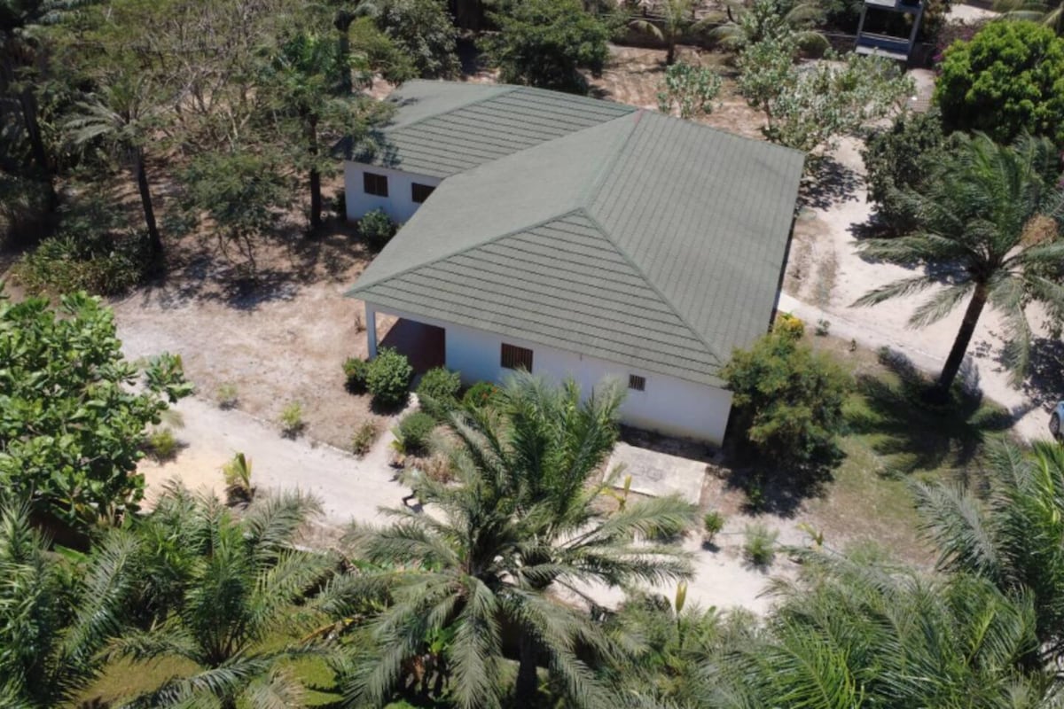 The Grove is a tropical getaway for families, small groups, or anyone looking to explore this beautiful corner of Senegal! The property includes four bedrooms in three separate buildings that sleep a total of eight. The main house, kept cool by traditional design features, has an open, well-equipped kitchen and two breezy lounge areas with stunning sea views. Outside, a covered dining table, grill, and gazebo overlook the ocean. Downstairs, a private garden path leads directly to the beach.