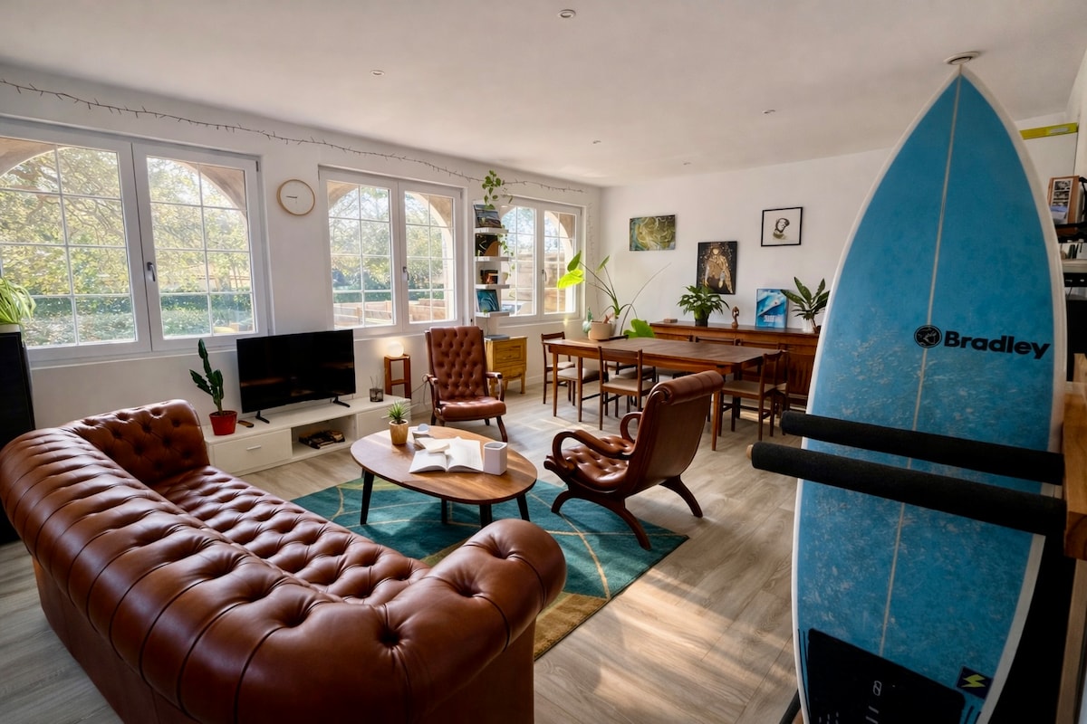 Ideally located 15 minutes from Hossegor and 20 minutes from Biarritz, our house welcomes you with all the comforts for a pleasant stay for families or groups of friends. Just 4 km from the ocean and close to shops (Intermarché, bakery, caterer, restaurants, pizzeria, bars, etc.) as well as many activities (water park, walk to the Orx marshes, bike rental, surf school, zoo, skate park, etc.).