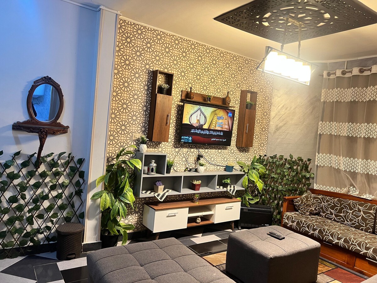 What You’ll Love Total and complete renovation 2023. Everything is brand-new Upscale contemporary decor Gourmet, fully-equipped kitchen, including stainless steel appliances, coffee machine Pool table game room Large TV w/channels and live streaming services. Peaceful central city location. Close to the Nile river (10 min) & 20 min from Pyramids. Private outdoor patio Stove Egyptian floor lounge, dining area Remote work w/ high speed WiFi Sleeps up to 6 people