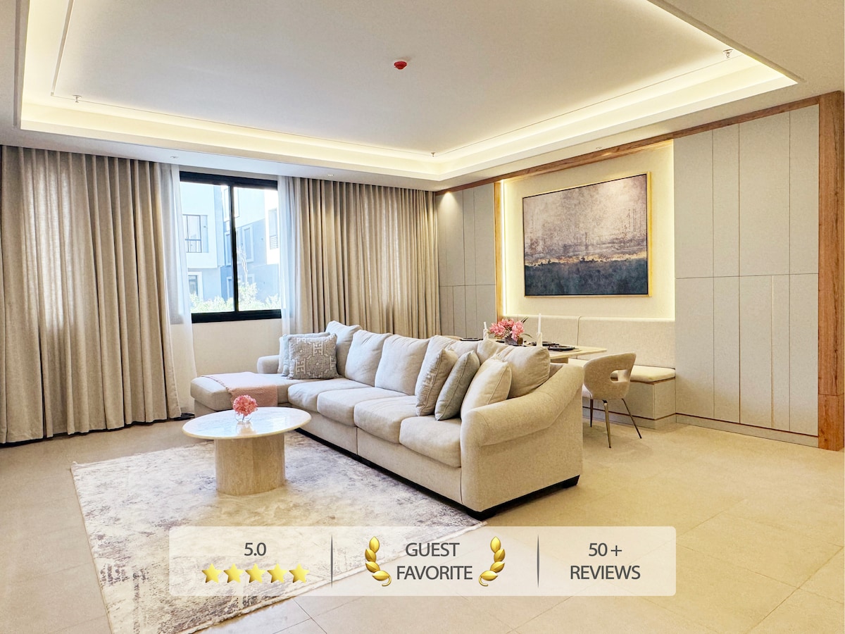 Craving a Riyadh escape? Discover your private oasis in this stylish apartment. Relax after exploring the city, or settle in for longer stays. Enjoy a fresh Nespresso and cinematic nights on the 65” screen. Located near Boulevard City, Riyadh Park, and top attractions. Need essentials? Shops and services are steps away. Staying longer? Message us for exclusive offers. Your unforgettable Riyadh stay begins here!