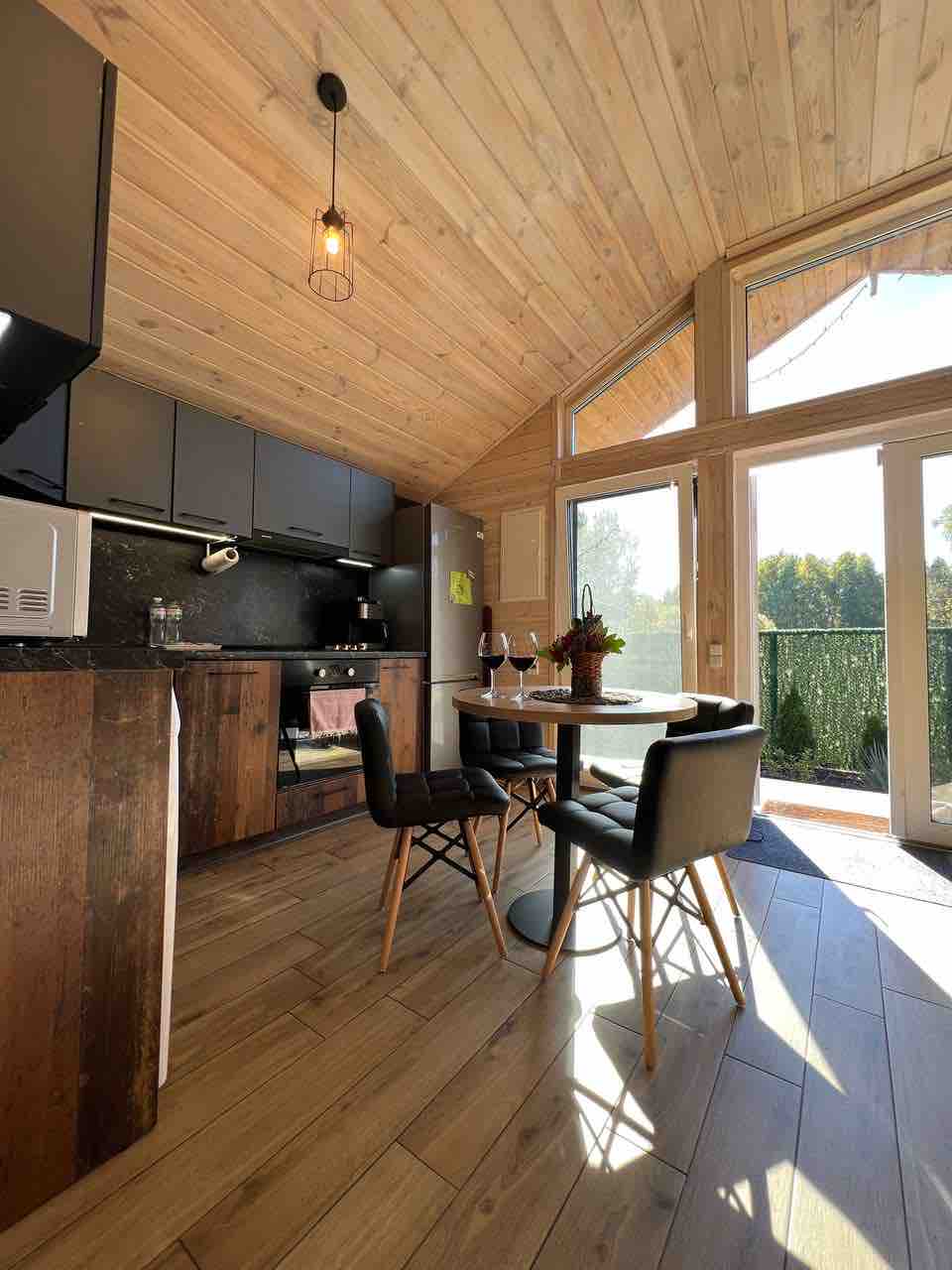 Koshara is a modern eco-friendly house made of wild Carpathian logs near a forest lake, which has everything for a comfortable rest and stay 20 km from Kiev, designed for up to 6 people and 4 beds + 1 extra place. The house includes a spacious hall with a large table for 6 people and a soft corner, one bedroom, a bathroom and a kitchen with all the necessary utensils. On the territory of the house there is a swimming pool, a gazebo with a barbecue area, grills and skewers, parking. Our Instagram: Koshara_chalet