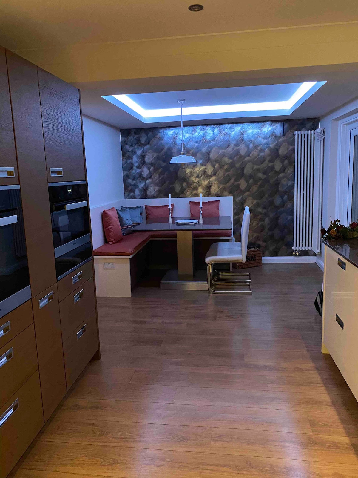 Enjoy modern comfort at our beautifully designed, self-contained 1-bedroom annex. The open-plan living space boasts a stylish lounge with twin sofa beds, a sleek, fully equipped kitchen and breakfast bar Unwind in the spacious bedroom with a plush double bed and a private en-suite featuring a luxurious walk-in shower. With a private entrance, super fast Wi-Fi, Smart TVs and all essential amenities, this peaceful retreat is perfect for solo travellers, couples, or families of up to 4.