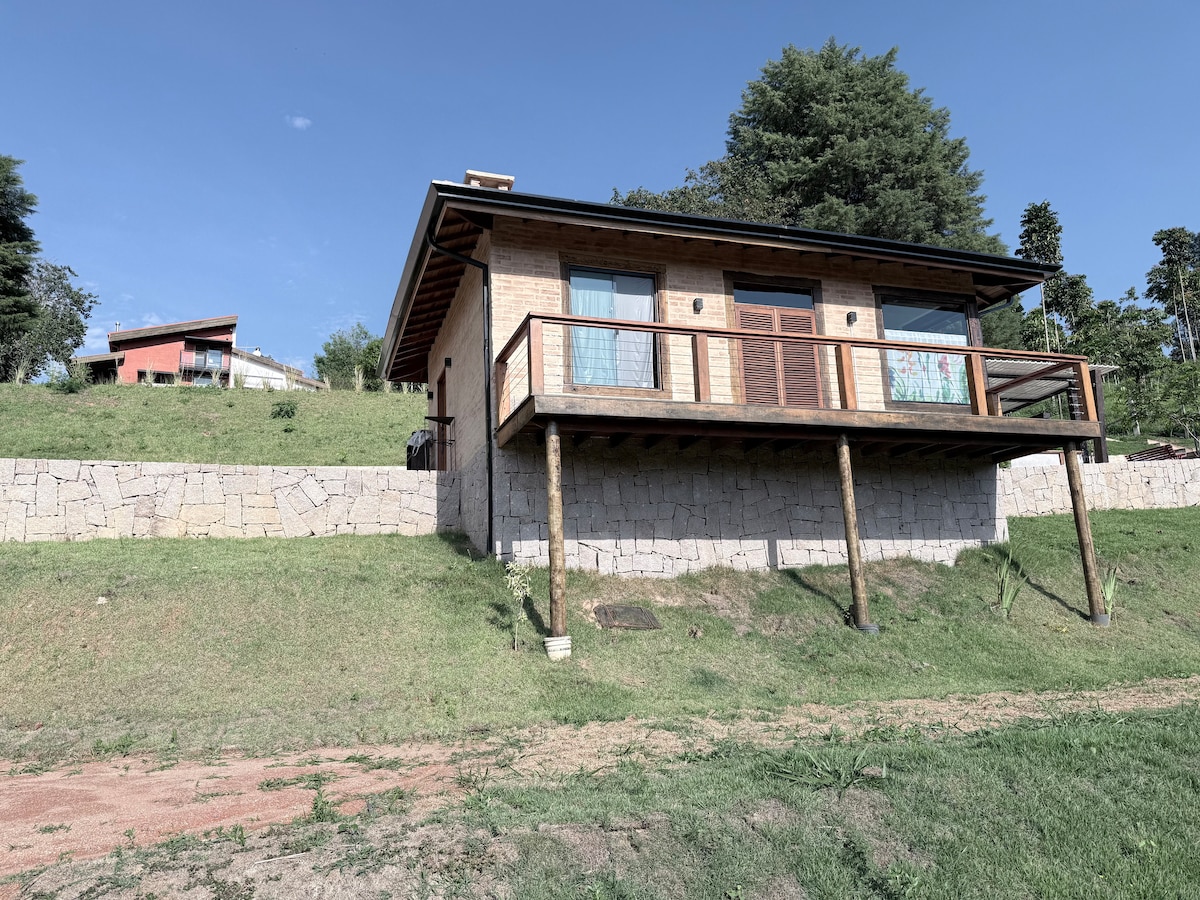 Private, 7.5 km from the center of Águas de Lindoia, Extra large Jacuzzi (35º), for 4 people, with door and 2 windows with circulation on the ground floor, hammock, fireplace, equipped kitchen and air conditioning (bedroom). With a private area in the middle of the mountains, with a unique view. Vivo and Starlink Internet. After your reservation, we will call you to explain everything from your arrival to tips for tours. Our service is from start to finish. We make a point of doing a personalized check-in, taking you to the property