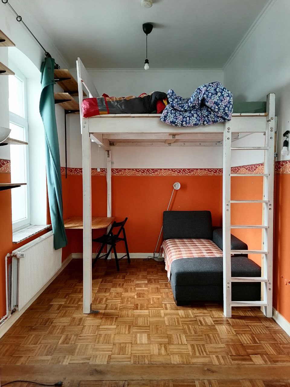This beautiful apartment has a kitchen, living room with sofa bed, bathroom and bedroom with a double bed. In addition, there is a roof terrace with a small sauna. In the building there are 4 other apartments and 2 stores/offices on the first floor. The apartment is very central. The train station is 15 meters away. 30 minutes to Bremen city center. Within walking distance are supermarkets, pharmacy, restaurants, etc.
