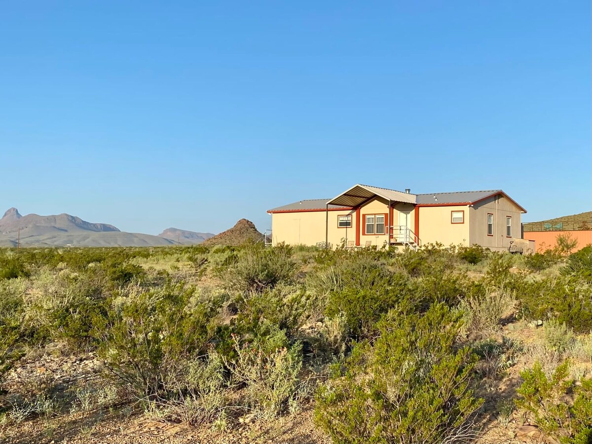 West Texas Ranch meets Designer Style! Near town, 30 minutes from Fort Davis, Marfa, and Marathon. The Big Bend National Park, Terlingua, and Lajitas are roughly 100 miles away. Relax on the expansive front porch and enjoy the wide-open spaces and skies brimming with stars, and wake up to a sunrise with an uninterrupted view of Hancock Hill. Grill and chill! Watch the abundant wildlife such as javelina, mule deer, and fox. Enjoy the gateway to the Big Bend while staying comfortably.