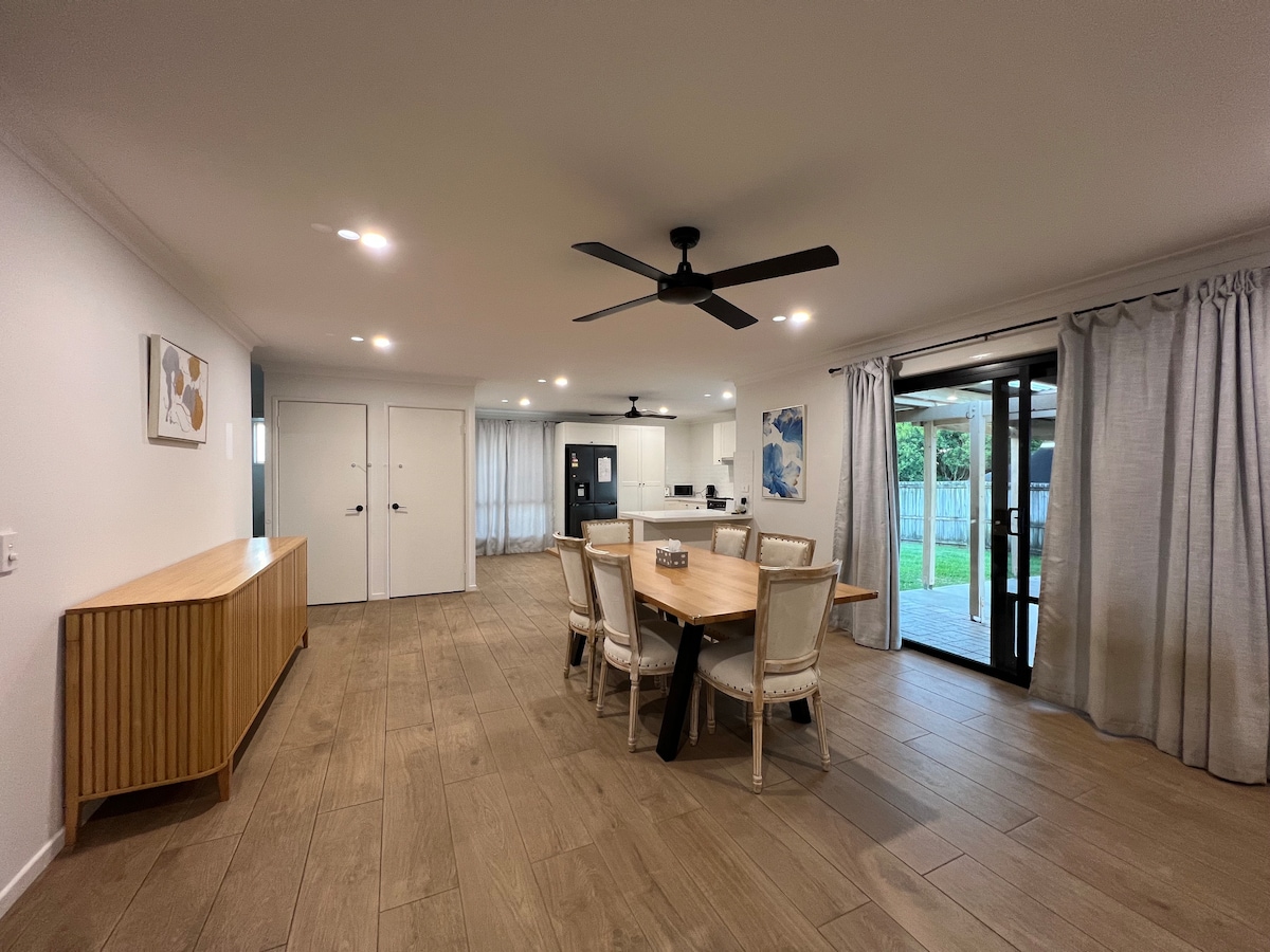 Beautiful Waterfront home. Modern interior. Rare water front, Direct water views, beautiful sunsets. Relax on the pergola with a wine & watch the world go bye. Glass house mountains views. Spacious open plan. Wifi. Fully Ducted air conditioning aircon bedrooms (2 up stairs, 2 on ground floor. All with Water views. 2nd lounge on the ground floor. Plenty of room for a large family. Great location, walking & bike tracks along the water. Secure parking for a boat+ pets. & two drive ways