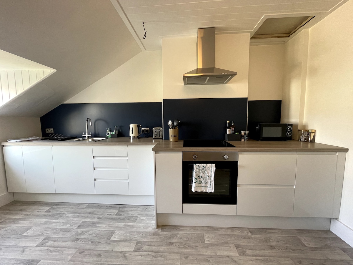 Spacious top floor Studio Apartment with stunning sea views, set just off the high street & 5 minutes stroll to the local beaches. Star gaze at night sky through the huge roof light over the king size bed, or take in the sun rise from the sofa or breakfast table. Centrally located but peaceful, with easy access to all the bars and restaurants and a lovely park opposite. The train station is a 5 minute walk and we have a taxi rank and a Coop supermarket at the end of the street.