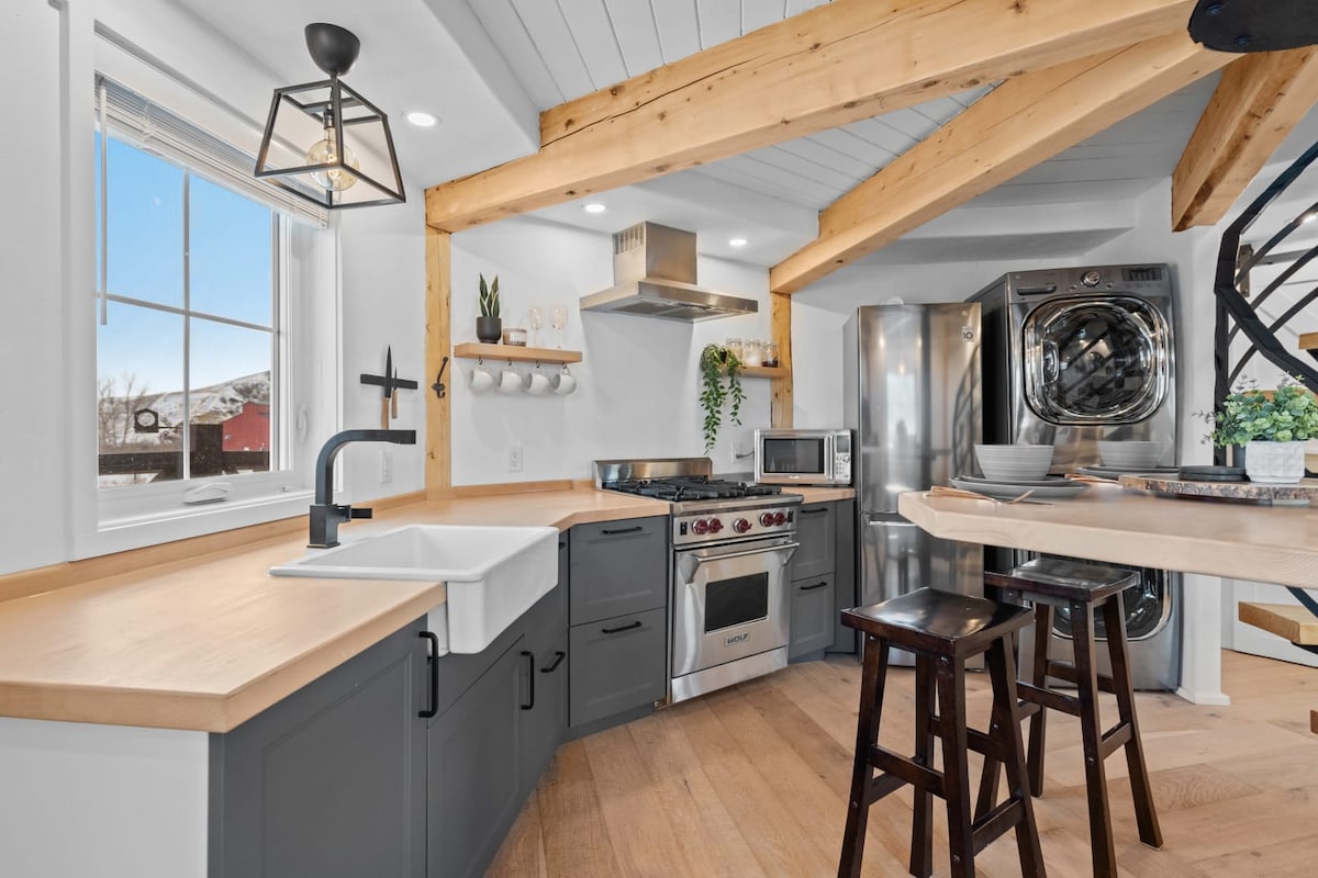 Enjoy a modern experience at this freshly renovated walkout basement suite. Fully equipped kitchen with apartment sized appliances, coffee bar, and water filtration. Two comfortable queen beds, spacious living space with TV and streaming services, and 3-piece bathroom with standup rainfall shower. Access to shared outdoor space with BBQ, fire pit, and outdoor seating. Steps away from historic downtown and proudly partnered with PoolHouse Coffee Roastery to bring you the freshest coffee in town.