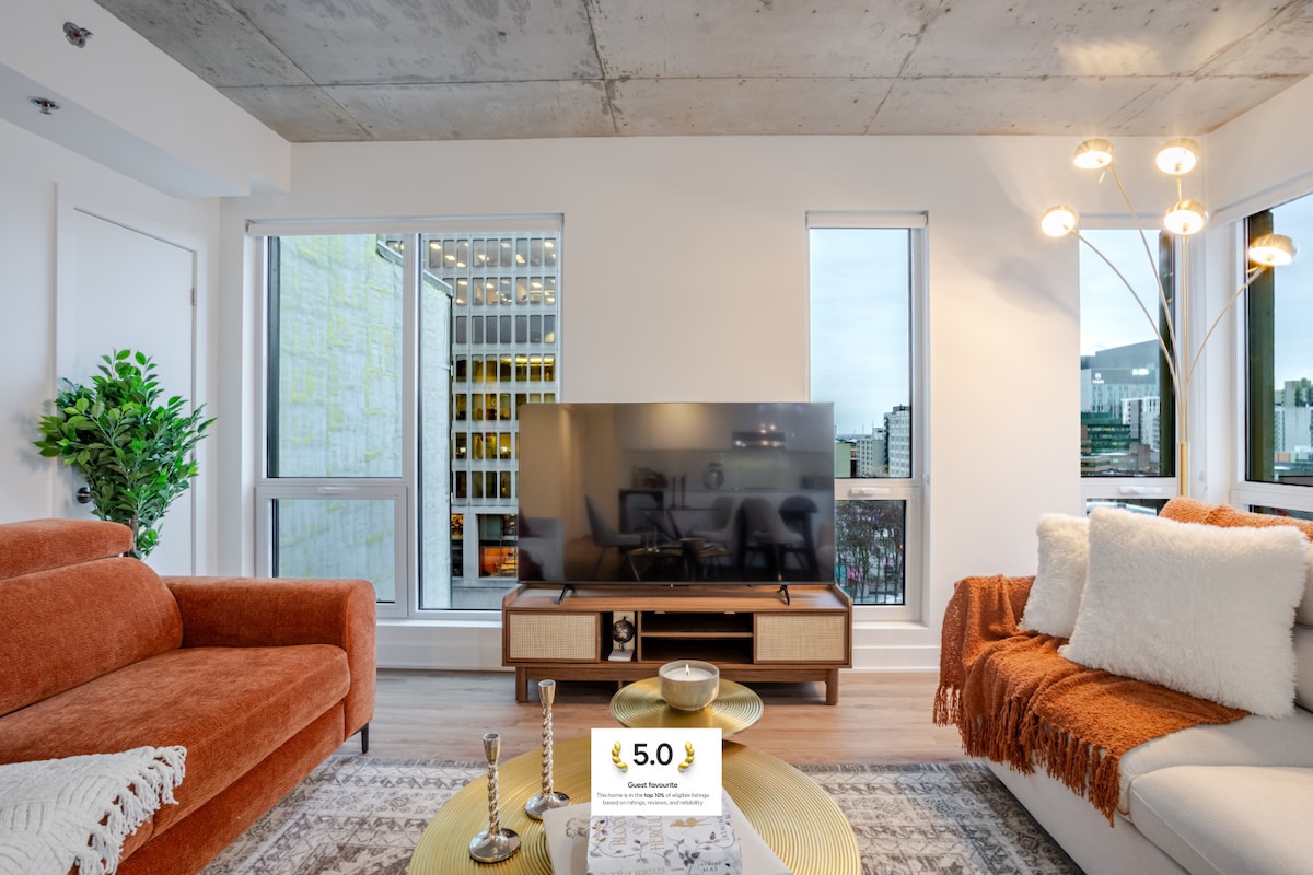 Stay in the heart of Montreal in this modern 2-bedroom, 2-bath apartment that accommodates up to 6 guests. Featuring two queen beds and a sofa bed, this stylish unit offers comfort and convenience for families or groups. Located near Downtown and the Plateau, you’ll enjoy easy access to restaurants, boutiques, and cultural attractions, all while relaxing in a spacious, well-appointed home.