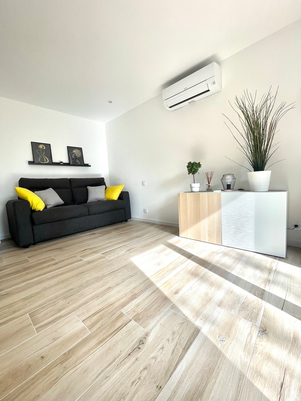 SIX-FOURS - Les Vacances - Superb fully equipped apartment, air-conditioned, refurbished 2 bedrooms that can accommodate up to 6 people. Ideally located to do everything on foot, 2 minutes from the beaches, restaurants, shops and 10 minutes from the port of Sanary (most beautiful market in France 2018). Parking in a quiet and secure residence. (washing machine, dishwasher, TV, etc.) 2 terraces of 20 m² each (one in the sun and one in the shade).