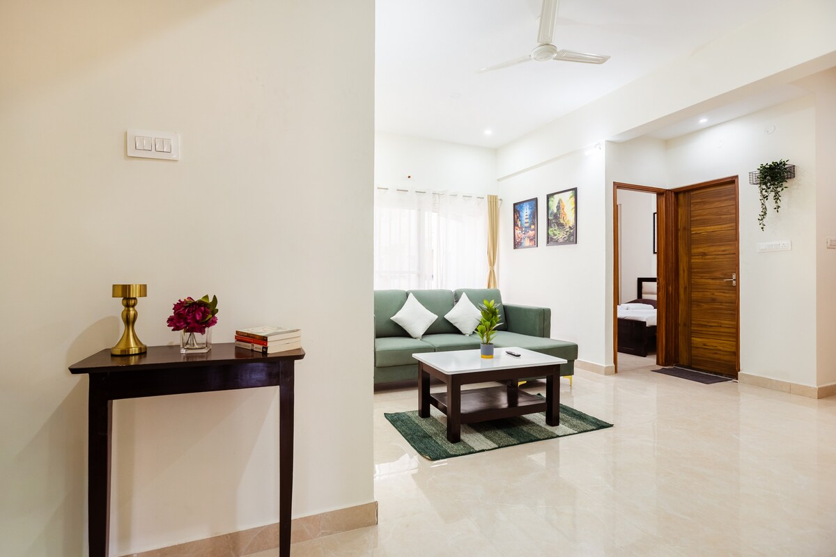 Welcome to Buteak Suites, your perfect urban retreat in the vibrant BTM Layout, Bengaluru. Blending the warmth of apartment living with the sophistication of boutique hotel hospitality, our thoughtfully designed 1 BHK Large Suite(460 sq feet) & Extra Large Suite (530 sq feet). Whether you’re here for work or leisure, enjoy a seamless stay with modern amenities, flexible check-ins, complimentary gym access from fitness yard, and daily unlimited housekeeping.