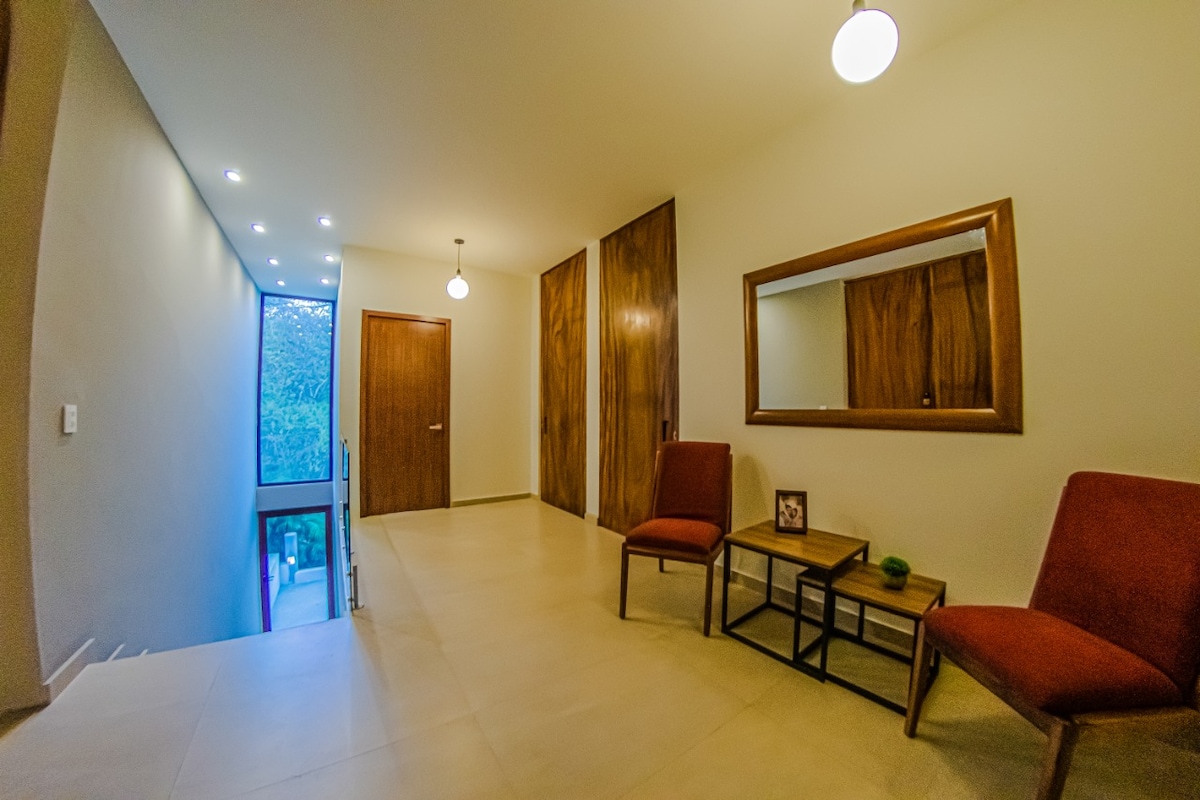 Make unforgettable memories at this unique and family friendly place. This home away from home, has an fully equipped kitchen, 3 bedrooms, 3 bathrooms, with modern air conditioning, 12 ft ceiling with modern fans in each room, a small (cool)dipping pool, rooftop terrace, and a patio with palapas. It's located right on the main street near convenience stores, restaurants, shops, and pharmacies. 10 mins stroll to the beach for breathtaking sunsets and sunrises. Or hit the waves for surfing ride.