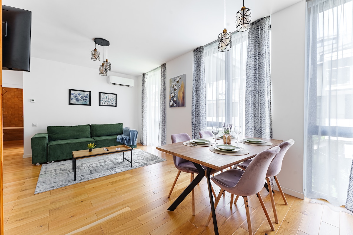Welcome to your urban oasis in the heart of Bucharest! Discover the perfect blend of comfort, convenience, and modern living in our spacious Apart-hotel. With a focus on luxury and relaxation, this apartment promises an unforgettable stay for up to 4 guests. Immerse yourself in the vibrant energy of Bucharest from your base, being super close to the Historical Center. Enjoy easy access to local attractions, dining, shopping, and entertainment and create lasting memories in this dynamic city.