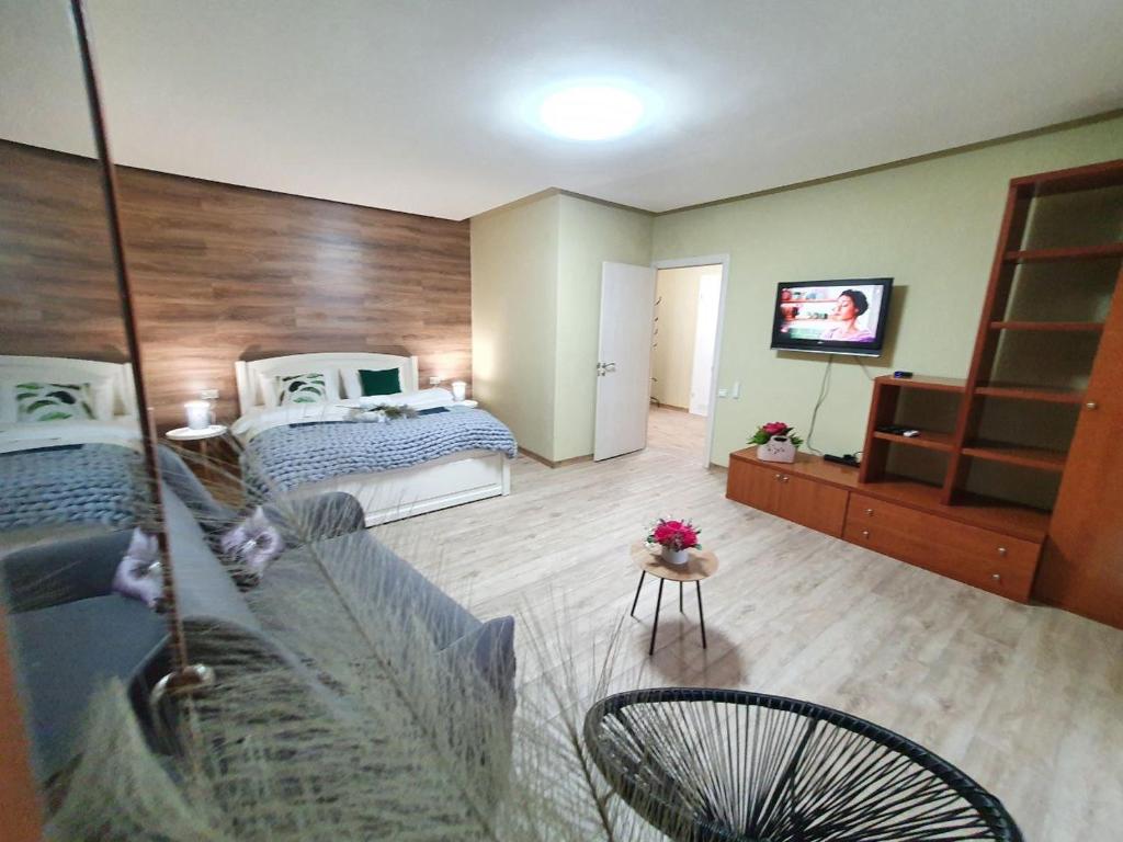 This apartment is very well situated, as you can not be more central in Kiev than on Kreschatik, Arena City. My apartment is perfect for u to enjoy Kiev. It feels warm and cozy during cold weather and cool and fresh for warmer days. It's full of light, sunshine and quiet. Appartment has 3 bedroom with a king sized bed, the living area also has found-out sofa. Apartment is perfect for a big family or group of 2 to 6 persons. Relaxation room with round Jacuzzi a private Sauna)