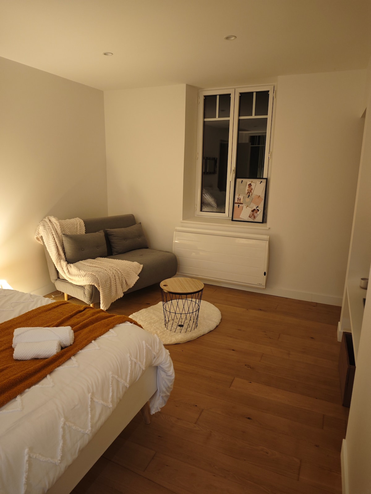 Charming newly renovated 50m2 outbuilding located under Gaillon Castle and a 5-minute walk from the city center. 25 minutes from Monet's garden in Giverny, 45 minutes from Rouen and 1 hour from Paris, the accommodation, very quiet, is in the middle of a landscaped garden and has a beautiful view of the old Renaissance gardens of the castle. I can also welcome you to another house two minutes from this one that you can find on the site in the name of the "Logis du château".