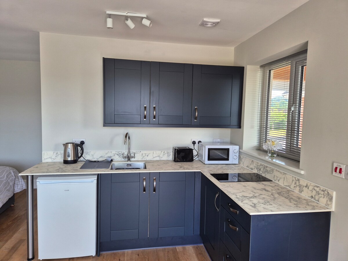 Brodawel Bach is a self-contained apartment on the outskirts of the picturesque market town of Builth Wells. It has a double bedroom, open plan kitchen/ living room, bathroom, and off street parking. Guests can relax in the quiet garden and enjoy the view. Suitable for couples or singles looking to explore the beautiful Welsh countryside, walking, cycling, fishing and golf. Perfect for visitors wishing to attend events at the Royal Welsh Showground which is 1 mile away.