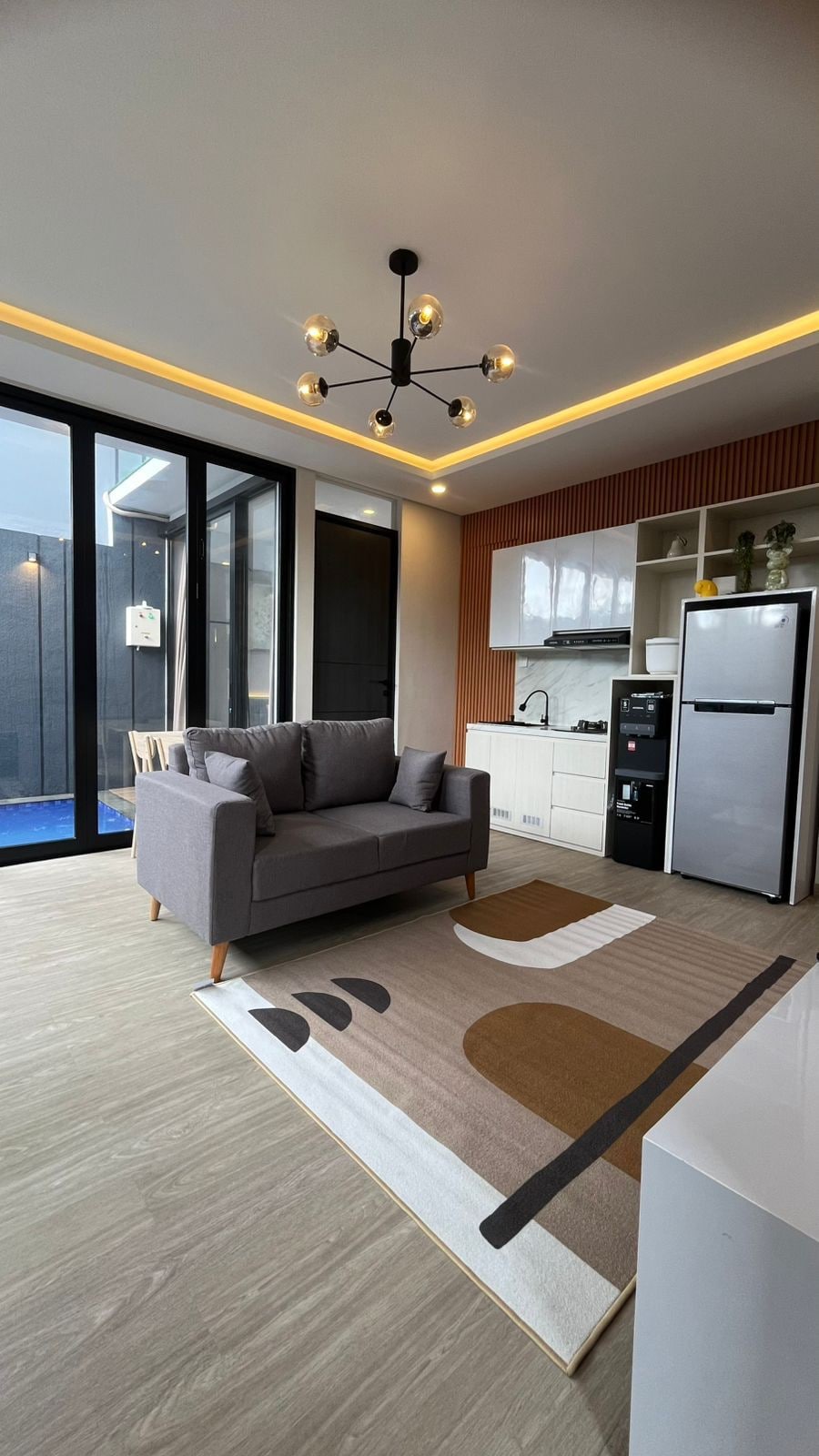 A comfortable residence that feels like it has a cafe-style kitchen accompanied by the singing of the trees and the coolness of the stone city and the sound of the pool water that brings the romance of your vacation with your family or partner. And enjoy karaoke and bbq facilities that can add intimacy