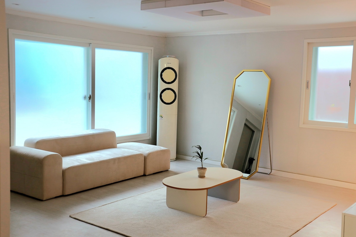 Newly opened accommodation Sosohan Enjoy the little happiness of everyday life. This accommodation is located in the station area of 1 minute from the station. It is also close to the airport bus stop. It is the best place to stop on the way to the airport. 1. Best value for money multi-person accommodation This property is the best value for the money for up to 8 people. (💚Bedding is provided according to the number of guests, so please enter the exact number of guests and check the detailed description at the bottom💚) 2. Super Station Area This is a super station area accommodation 1 minute from Geosan Station. Airport bus and wide area bus stops are also nearby. Incheon Airport 40 minutes 30 minutes from Gimpo Airport Hongik University Station 40 minutes It is the best condition for travelers. 3. Premium bedding set We prioritize the cleanliness of all bedding, washing and disinfecting every day, and provide hotel bedding for a good night's sleep. 4. Numerous amenities Convenience facilities such as Daiso, Olive Young, convenience stores, marts, restaurants, and markets are located nearby, making it convenient to use.