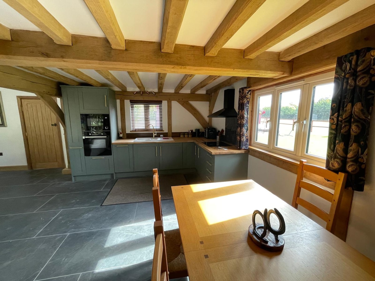 The Barn sleeps up to 7 people, with views over the countryside, a large garden and outdoor bluetooth enabled hot tub, new in August 2021. It's a 'get away from it all' place. Visit Framlingham, Norwich, Cambridge, Thetford Forest, Southwold, Aldeburgh and more. There are traditional English pubs all around us serving Suffolk ales, great food and takeaways. Family and dog friendly, wheelchair accessible and suitable for business travellers. Superhosts! EV charger at nearby garage.
