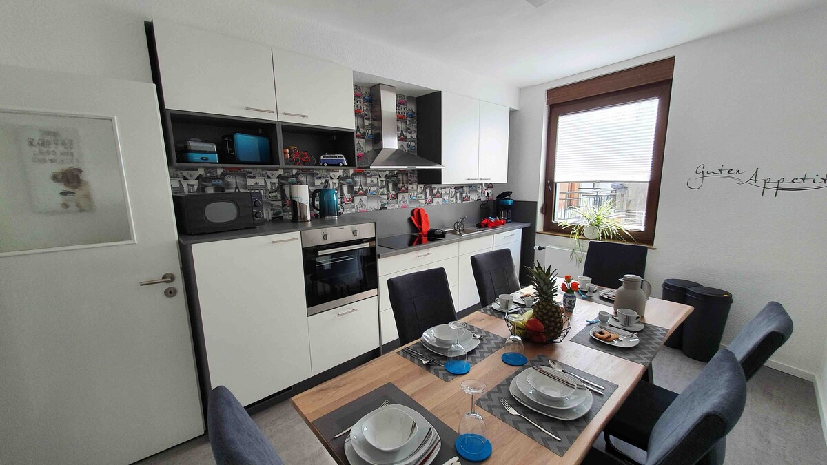 Our apartment is comfortably and modernly furnished. It is located in the center of the Moselle castles, 20 km from Cochem and 30 km from Koblenz. The spacious terrace can be reached via the living room and one of the bedrooms. From here you can enjoy a great view of Bischofstein Castle, the Moselle and the passing ships with a good glass of Moselle wine. The Moselle foothills with a large sunbathing lawn are right at your doorstep, so to speak, and also invite you to relax.