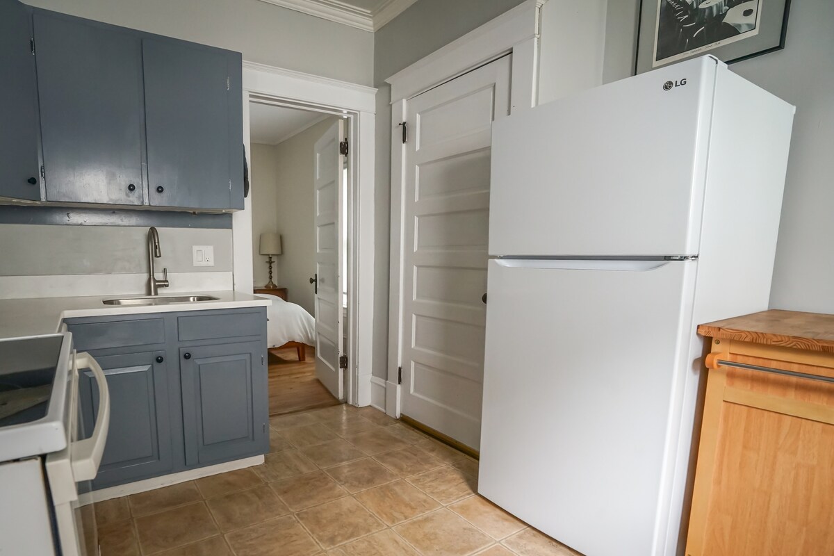 Downtown Burlington! Completely renovated 1 bedroom apartment in historical 1845 house. New kitchen. open floor plan, super comfy futon if you need an extra bed. Bathroom with modern feel juxtaposed with a classic claw foot tub. Brand new amenities with a touch of historical flair: high speed wifi, 65" tv, hardwood floors through out, AC and heating controls. 7 minute walk to Church St. Close to UVM and Champlain College. 1 off street parking spot.