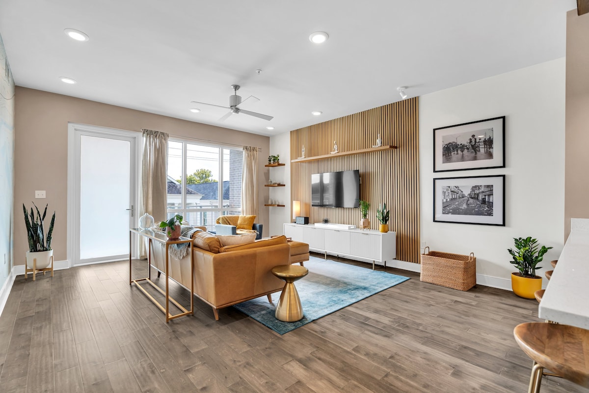 Stylish 2BR/2BA condo at The Saxony in the heart of Bywater. Features mid-century design, local art, two king beds, chef’s kitchen, high-speed Wi-Fi, and in-unit laundry. Enjoy a private balcony, courtyard pool, and onsite gym, plus free gated parking. Steps to award-winning dining, Crescent Park, and neighborhood cafés, with a scenic walk to the French Quarter. Ideal for couples, families, and remote work stays.