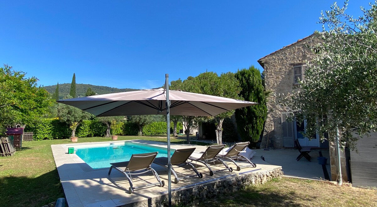 Discover this 100% natural gîte and its terrace, perfect for relaxing under the olive trees. In a palette of soft tones of straw and limestone, the bastide reveals a harmony of ecological materials and handcrafted objects in the colors of Provence. Guests can freely access the estate's swimming pool (shared with the estate's second cottage, La Chapelle) Living room, open equipped kitchen 4 bedrooms with shower rooms and toilet (+1 independent ground floor toilet) eco-friendly bedding, duvets and pillows, organic bed linens Private panoramic terrace Estate swimming pool access This is a part of the Bastide with independent access. The second part of the Bastide is occupied by the owners but faces the other side. An old chapel converted into a cottage is also part of the Domaine. Access to the Domain's swimming pool (Shared with the Domain's second gîte) A 6-hectare estate planted with more than 300 century-old olive trees that you can discover with good shoes. An ecological project based on 5 main axes: 1/Protection of existing heritage 2/Use of healthy and natural materials 3/Limitation of energy 4/Water management 5/Waste management 1.5 km from the center of Grasse, stay in a typical Provençal haven of peace, surrounded by olive trees and enjoy stunning views of the hills. Nice Cote d'Azur Airport 35 minutes away. Cannes train station is 20 minutes away. St François district accessible by car from the center of Grasse, by bus (Line 9 Jeanne Jugan) or even on foot (30 minutes with unevenness) The owners' house is still under construction but does not generate any nuisance.