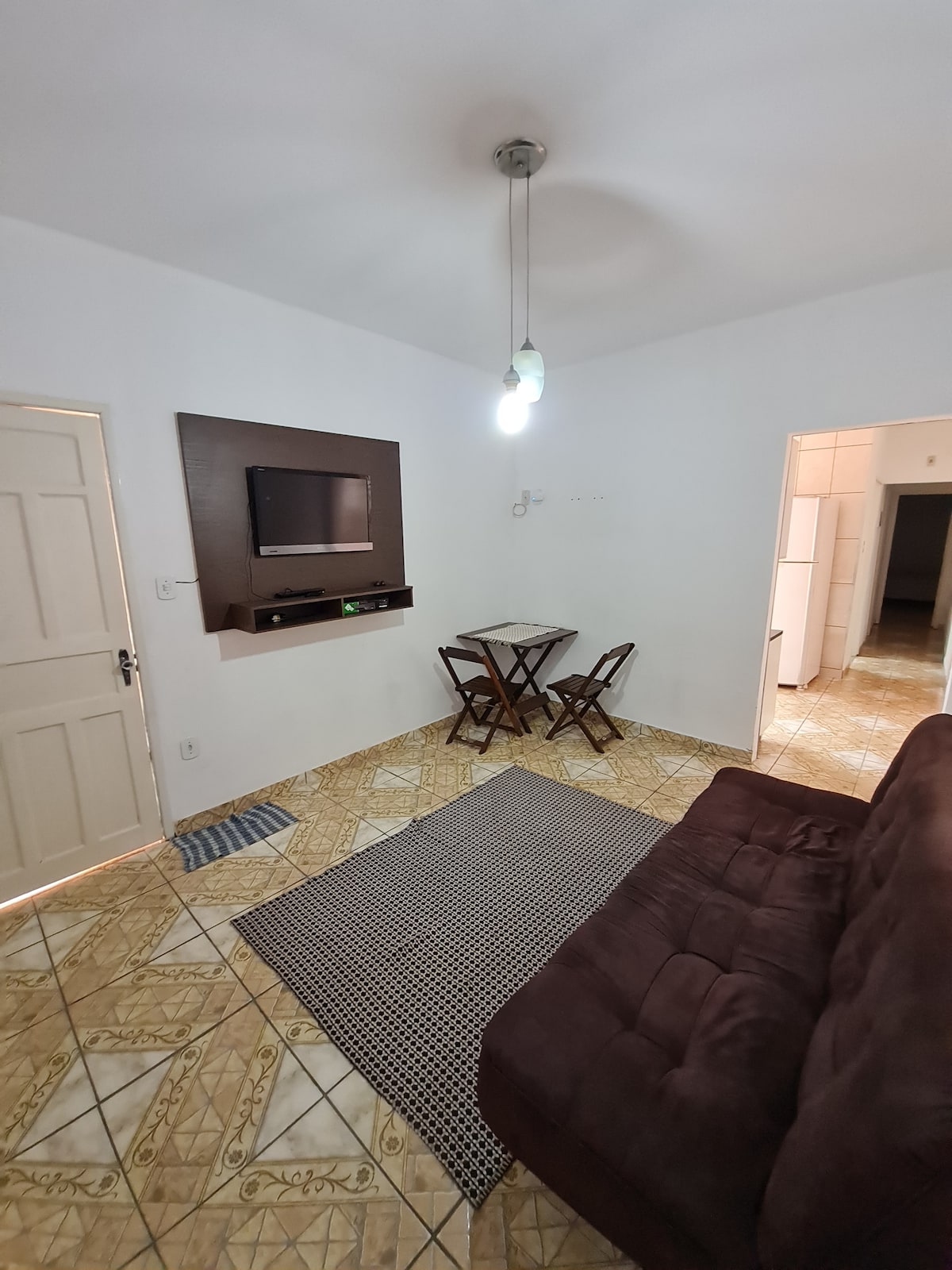 Relax with the whole family in this quiet accommodation. Located 800 meters from the Sanctuary of Aparecida, you can walk there in 15 minutes. We have 2 bedrooms that accommodate 6 people, 1 bathroom, a kitchen equipped with household utensils, a living room with a TV with more than 100 channels available. The garage measures 4m and accommodates a small and medium-sized car, and a gourmet area with a barbecue grill, table and chairs.