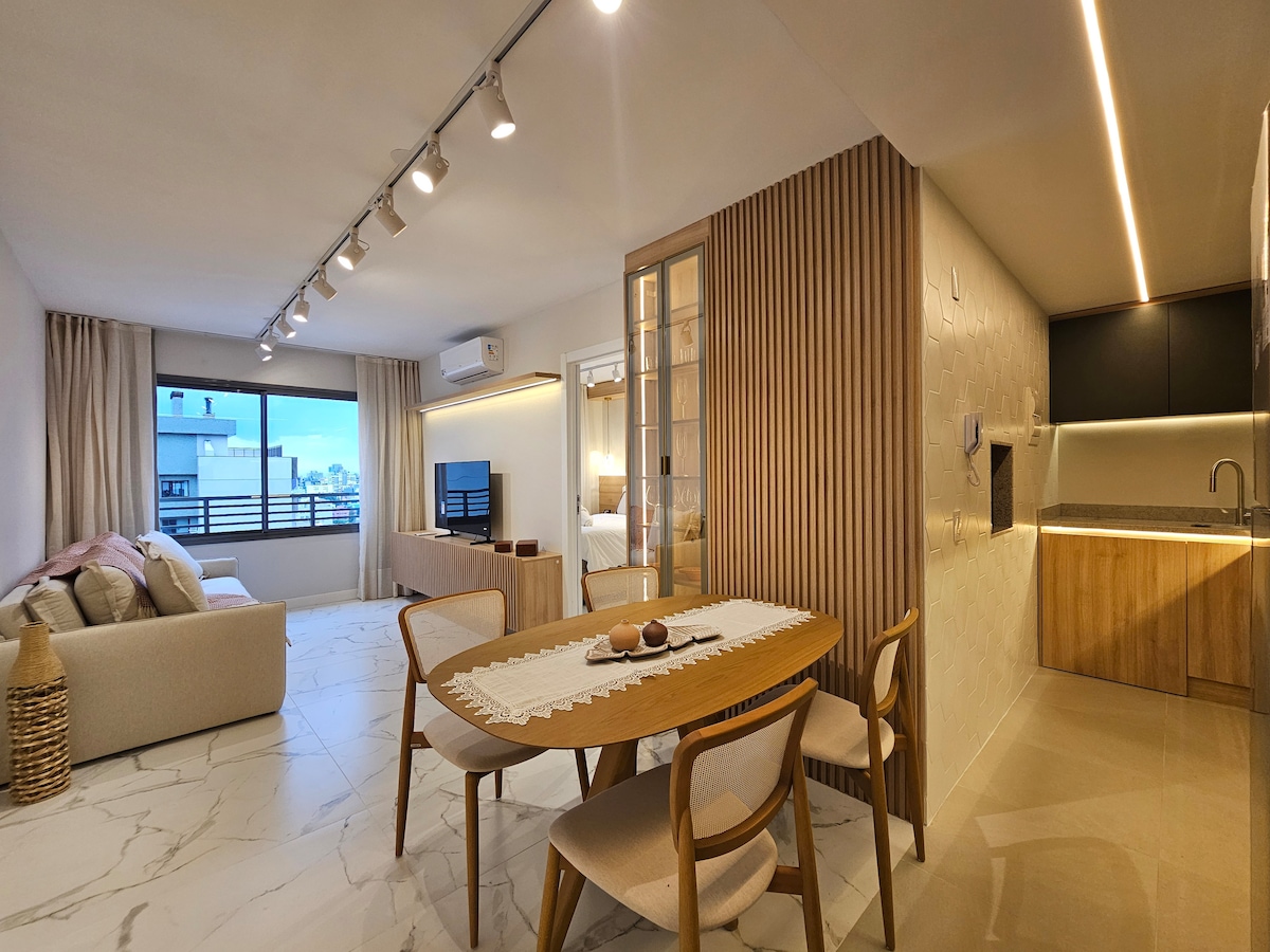 Um lugar onde você se sentirá em casa! Aqui, oferecemos uma experiência única e acolhedora que certamente tornará sua estadia inesquecível. O objetivo é oferecer um ambiente confortável e aconchegante, onde você possa relaxar e se sentir à vontade. O apartamento possui todo o conforto que você precisa para uma estadia agradável, desde uma cozinha totalmente equipada e climatizada até Wi-Fi .