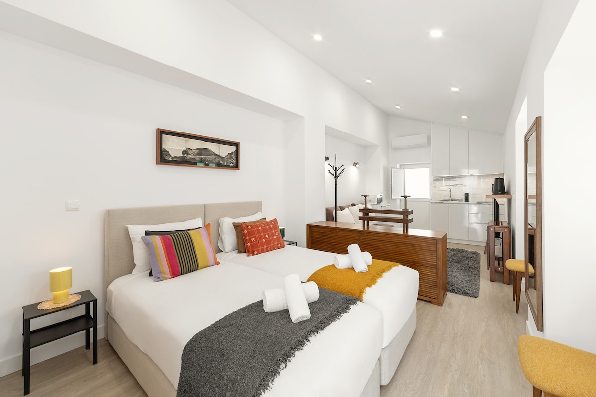 Espaço cuidadosamente pensado para proporcionar conforto, privacidade. A área principal é um espaço grande coberto, que une dois ambientes distintos: De um lado, uma suíte acolhedora perfeita para descanso casal Do outro lado, uma zona independente com casa banho, cozinha equipada, pequena sala e um quarto em mesanine com duas camas. Esta configuração única permite liberdade e cada um ter o seu próprio ritmo. Um equilíbrio entre união e liberdade, com partilhas em comum. Praias perto e Lisboa