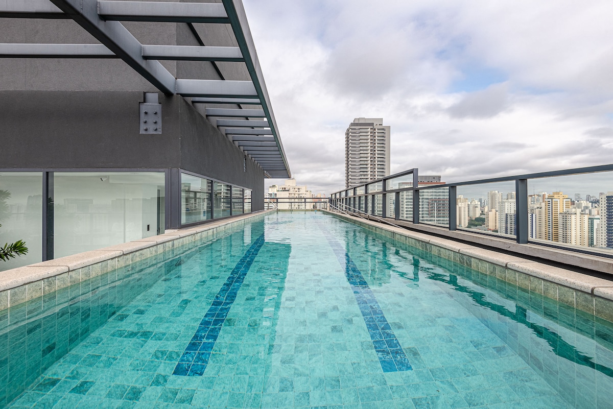 Welcome and make yourselves at home. The apartment is brand new, designed especially for you and has impeccable decor, very practical for everyday life. The view is spectacular! The apartment is on the 28th floor. We are in an excellent location in São Paulo, in the Pinheiros neighborhood, with restaurants, supermarkets and bakeries very close by. It's 40m2 (430 sqft) with 1 bedroom and 1 bathroom. Walking distance from Fradique Coutinho subway station (just 2 blocks).
