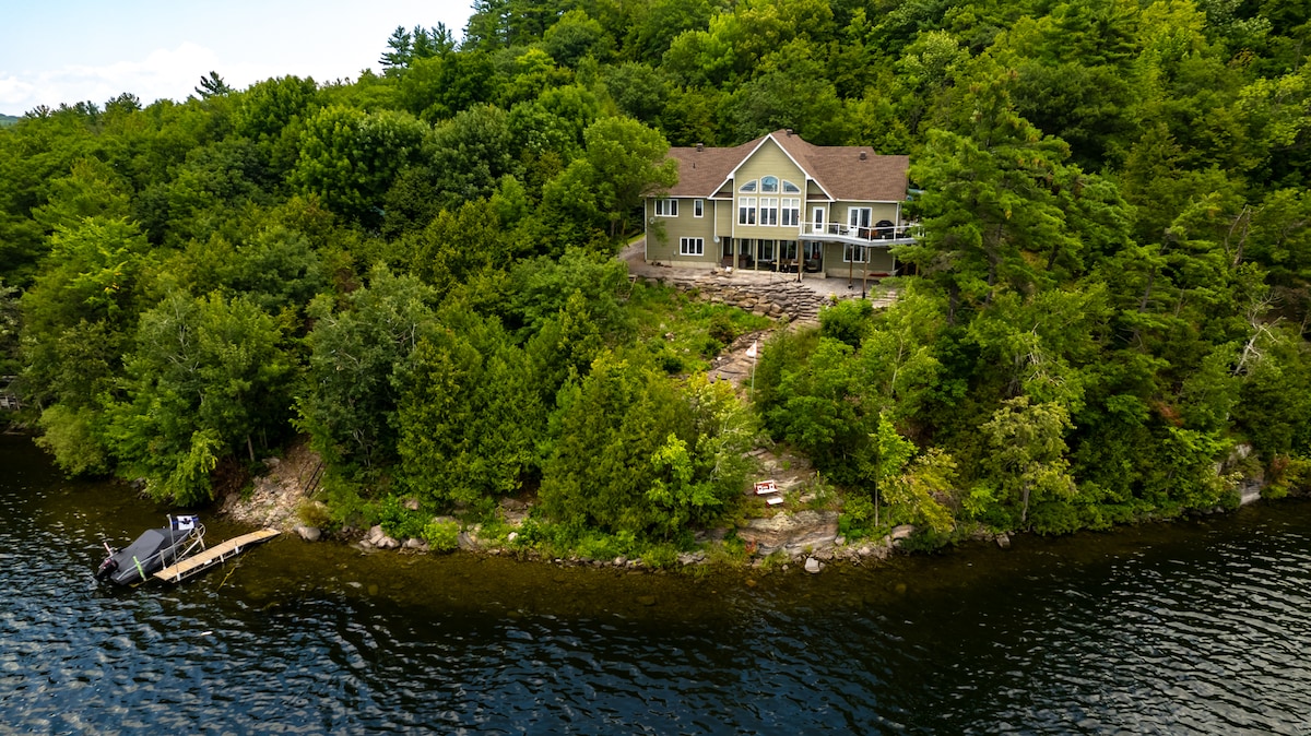 Hot tub | Private Lakefront | Sauna | Pool | Games Room | 4 Mins to Ski Hill The perfect spot for your family reunion, workshop, and time with friends! Features two separate spaces, each with private entrance options, under one roof—Spend time together with the option to retreat to private spaces at your convenience. Surrounded by trails and all of Calabogie's adventures. 6+2 bedrooms (3 King beds, 7 Queen beds) & 4 full baths. Spacious driveway for trailers. Keyless entry.
