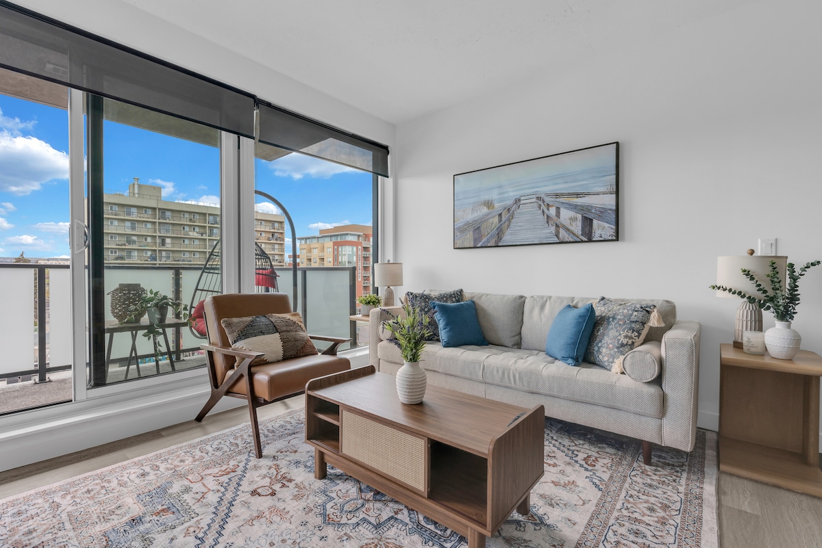 Be a part of Calgary’s skyline in this beautifully designed building; inside and out. You will enjoy views from every room with floor to ceiling windows and an outdoor patio furnished with high end furniture. Kick back and relax as you bask in the Calgary sun and taking in the views! Located between the Downtown Core and 17th Avenue, you are central to all major Downtown shopping, restaurants and shops.