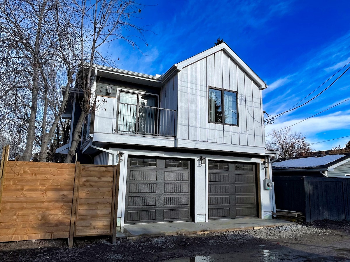 Enjoy winter and kick back and relax in this calm, stylish space. Enjoy the privacy of a fully separate home with view of Canada Olympic Park (Winsport) and evening sunsets. Luxury features including central air conditioning, quartz counters, hardwood floors and rejuvenating air tub. Located a short walk to the Bow River and quick access to the Trans-Canada Highway (Hwy 1) for your mountain adventures! Includes private single heated garage and off street parking for your short or long term stay.