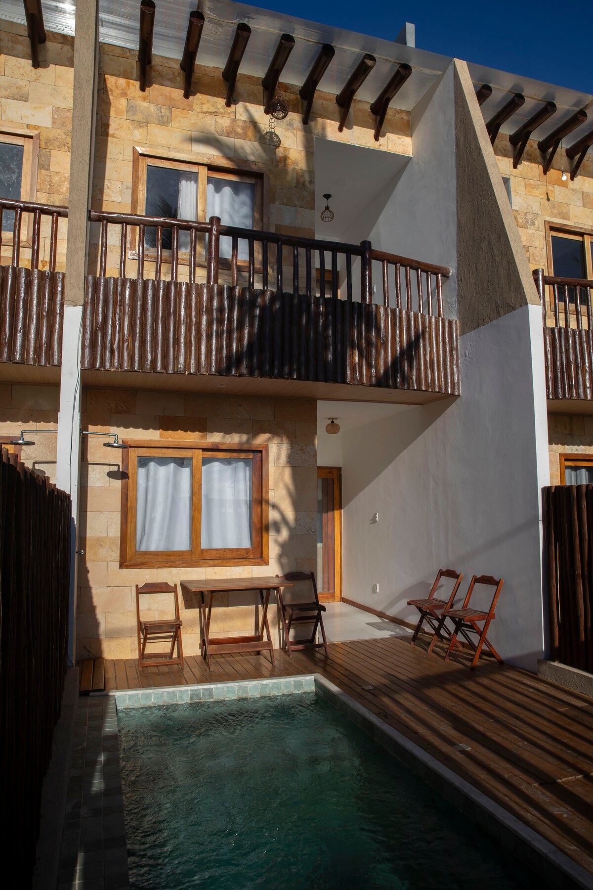 At Kiria's Village, you will find 3 charming, modern and super comfortable houses, perfect for enjoying an unforgettable vacation in one of the most special places in Bahia: Algodões Beach. With architecture that mixes the rustic with the contemporary, each house has its own private area integrated with nature and is just steps away from the sea. Relax in the private pool, listen to the sound of birds in the hammock area and feel the beach breeze. All this with the comfort and structure you deserve.
