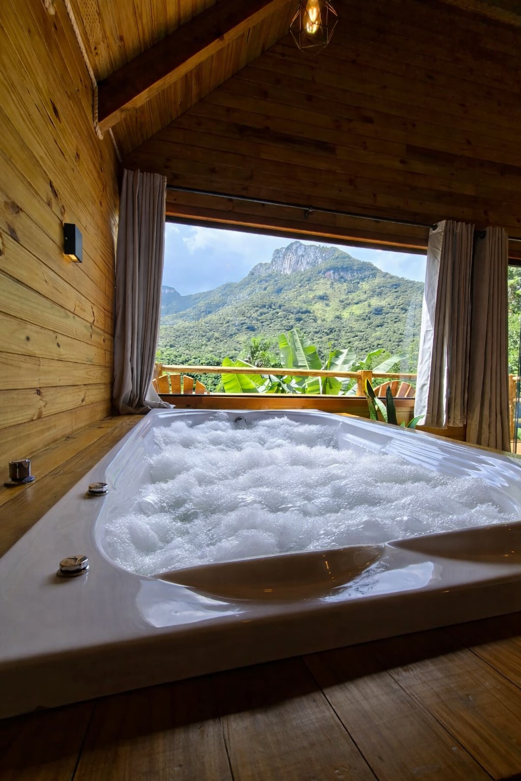 Jovita Waterfall. This place is unique, with an exuberant view and the privacy that few places offer. It was designed for couples who want to enjoy moments together and connect as much as possible with each other, with nature and the peace that the place offers. The chalet has its own style, an integrated space with a lot of confrontation and that offers an immersive experience with the waterfall and the forest that surrounds it. Definitely a different kind of lodging.