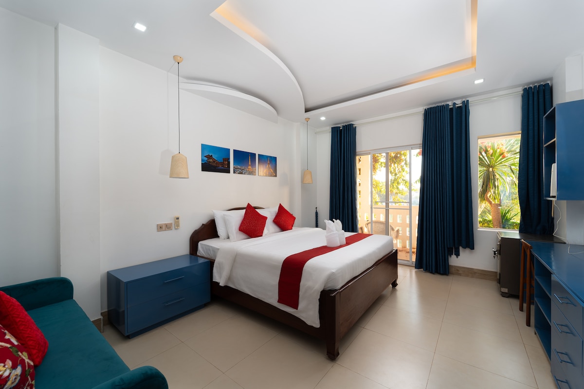 ** CHECK OUT OUR OTHER DIGITAL NOMAD-READY LISTINGS IN THE SAME RESIDENCE !! ** We're all about mindful travel. Our guests mean the world to us, and we're passionate about looking out for our local team, and our community. Our roomy studio is part of a charming property with seven separate units, right in the heart of Kandal Village. The best part? It's just a five-minute walk to the bustling downtown. Inside, you'll find handcrafted local furniture, tons of natural light.