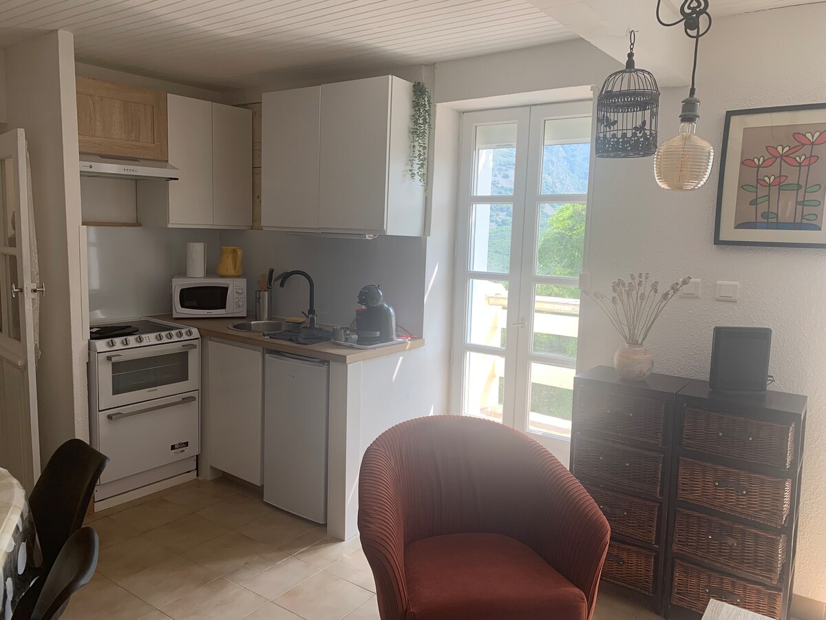 NEW: We have just equipped the gîte with centralized air conditioning. This gîte is very spacious, in a fenced and wooded plot of 2000 m², with great views of the surrounding mountains. I invite you to look at all the photos, so you will visit this 50 m² vacation rental and discover some surrounding landscapes. The gîte consists of 2 rooms, a living room and a built-in kitchen, then a very spacious bedroom with a suite, toilet and bathroom.