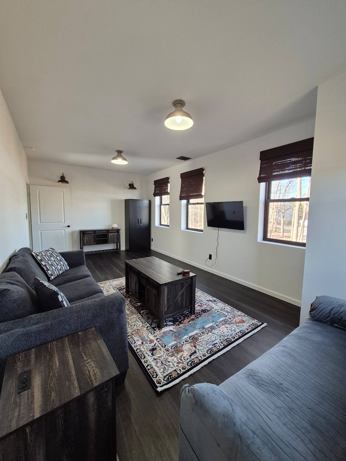 Welcome to the New Jersey Barndominium! Step into a recent new construction home and enjoy the peace, comfort, style, and serenity of a residential post frame. Rest, relax, and enjoy the convenience of being right next to Philadelphia and in the heart of the suburbs with this recent new construction two bedroom, one full bathroom, and one stocked kitchenette private guest suite.