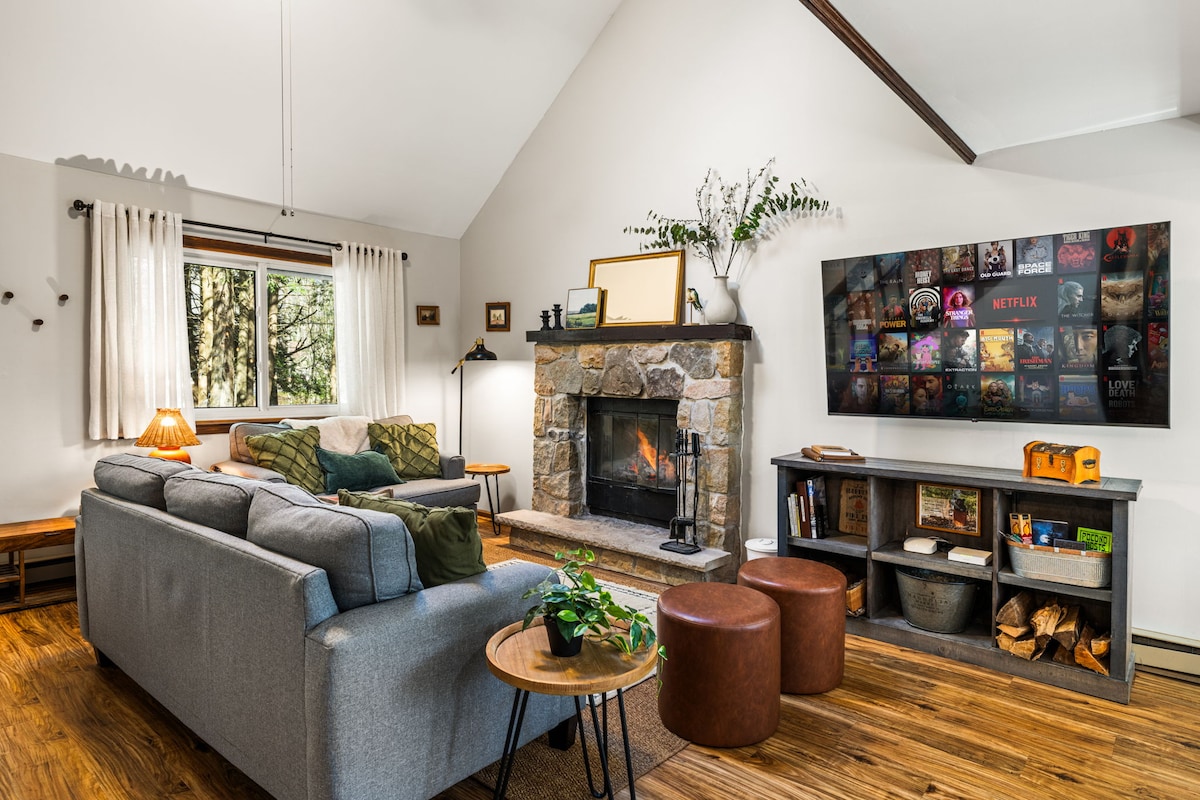 Remember the feeling of summer camp? Fresh air, crackling fires, game nights, and days spent by the lake. That’s exactly what you’ll find at Big Blue. A cozy, adventure-ready home tucked away on an acre in the woods. Spend your day exploring lakes, trails, waterfalls, or the slopes - then come home to grill on the deck, unwind by the fire, and end the night under the stars with s’mores. Perfect for families, couples or groups of friends looking to unplug, and reconnect with nature.