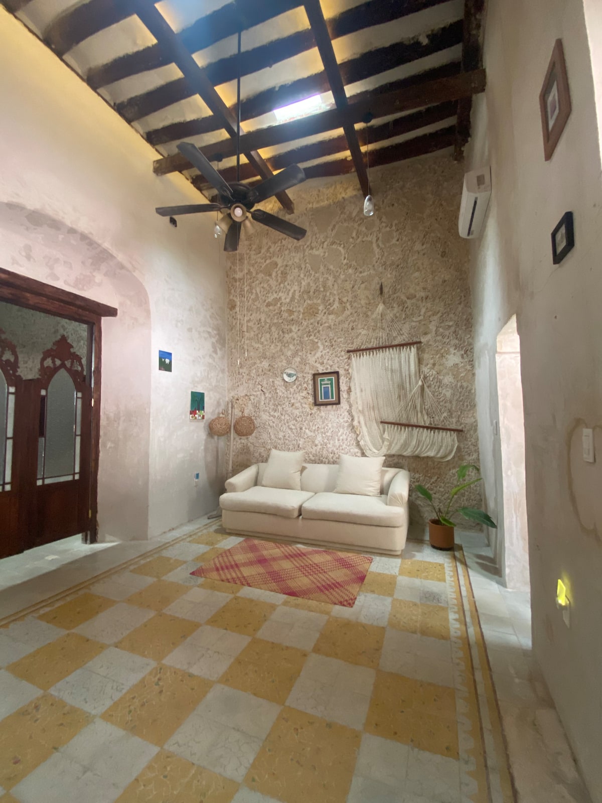 Enjoy the simplicity of this accommodation in one of the oldest neighborhoods in the city. A quiet, spacious, and family space a few meters from the historic center, where you can find cafes, restaurants, bars, shops, and souvenirs from Campeche artisans on the famous Calle 59. The house has a garage, beds, a crib, air conditioning in both rooms, ceiling fans, hammocks, an equipped kitchen, a heater, internet, and cable TV. Check-out at 12:00 PM and check-in at 3:00 PM.