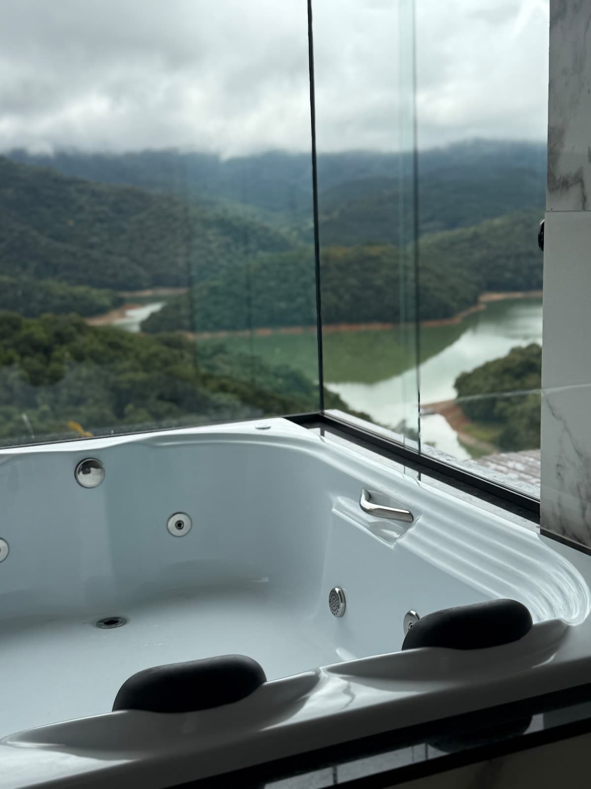 🌄 Privileged view of the highest mountains in southern Brazil and the Capivari dam. ♻️ Off-grid A-frame cabin, with 100% sustainable energy and total autonomy. ⛰️ At the top of the mountain, in the middle of the Atlantic Forest and an environmental preservation area. 💑 Exclusive retreat for couples seeking nature, privacy and tranquility. Come and experience the perfect connection between nature, comfort and innovation! Follow our journey on inst@ @cabanacapivari