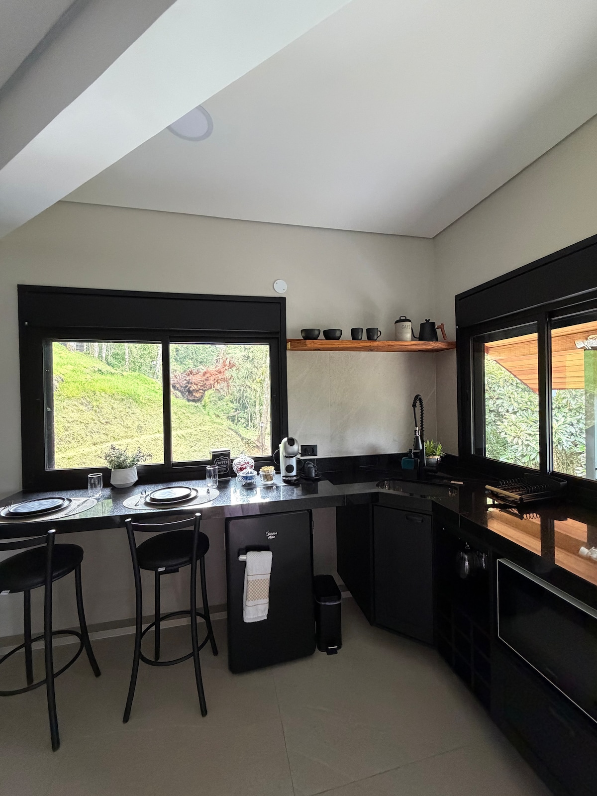3 en-suites with 3 bathtubs, king size beds and SPECTACULAR mountain views. Designed to provide true immersion in the Mantiqueira with comfort and sophistication. The beds, sheets, pillows, all of the highest quality, guarantee a rest worthy of a 5-star stay. Bathrooms, kitchen and gourmet area with heated floor, electric towel rail, oil heaters, eco-friendly fireplace and heating in all sinks. Ideal for up to 3 families.